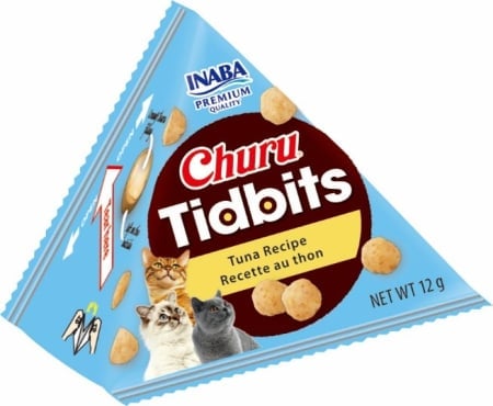 Churu Cat Tidbits Recompense pentru Pisici cu Ton 3 Buc – Rasfat fraged si cremos pentru pisici Rasfata-ti pisica cu o gustare irezistibila – moale la exterior si cu crema bogata de Churu in interior! Combinatia unica de texturi si ingrediente de calitate transforma fiecare bucatica intr-un moment delicios.