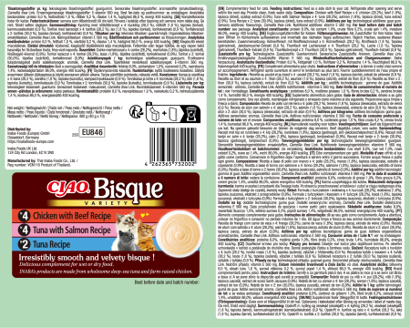 Rasfata-ti pisica cu gustul delicat si consistenta cremoasa a hranei umede Churu Bisque. Preparata din ingrediente atent selectionate si cu prospetime controlata riguros, aceasta formula ofera hidratare, savoare si un plus de nutrienti esentiali.