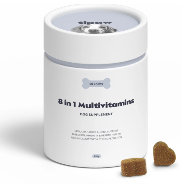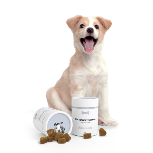 Tipaw 8-in-1 Multivitamins Supplement este un supliment multivitaminic complet pentru câini, formulat pentru a susține sănătatea zilnică din interior spre exterior.
